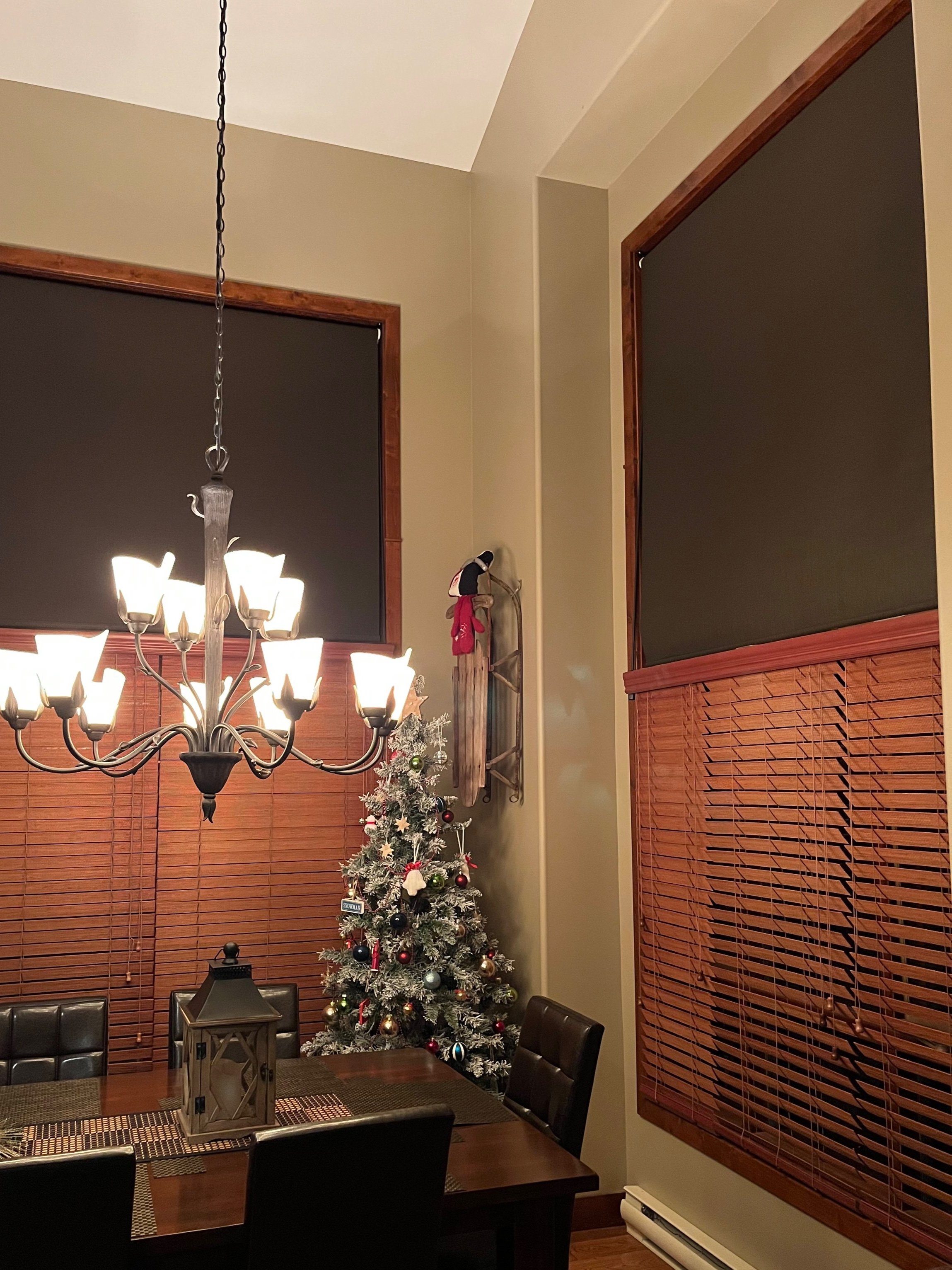 Our clients were looking to upgrade a couple blinds in their Sun Peaks rental. We decided on wand controlled roller blinds. Keep the incredible view in the day while offering privacy at night - the perfect solution for this space!